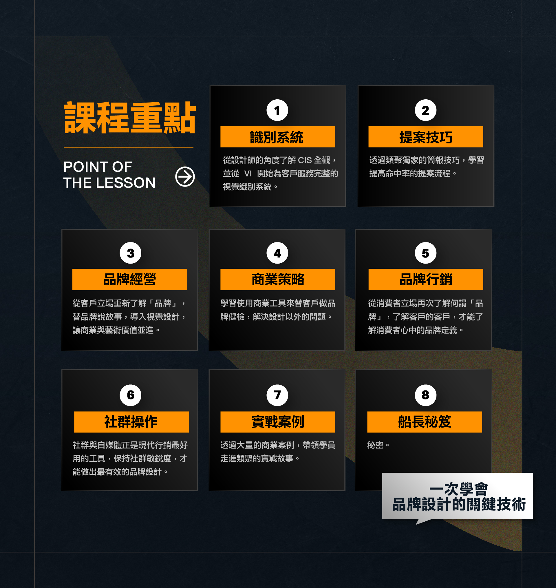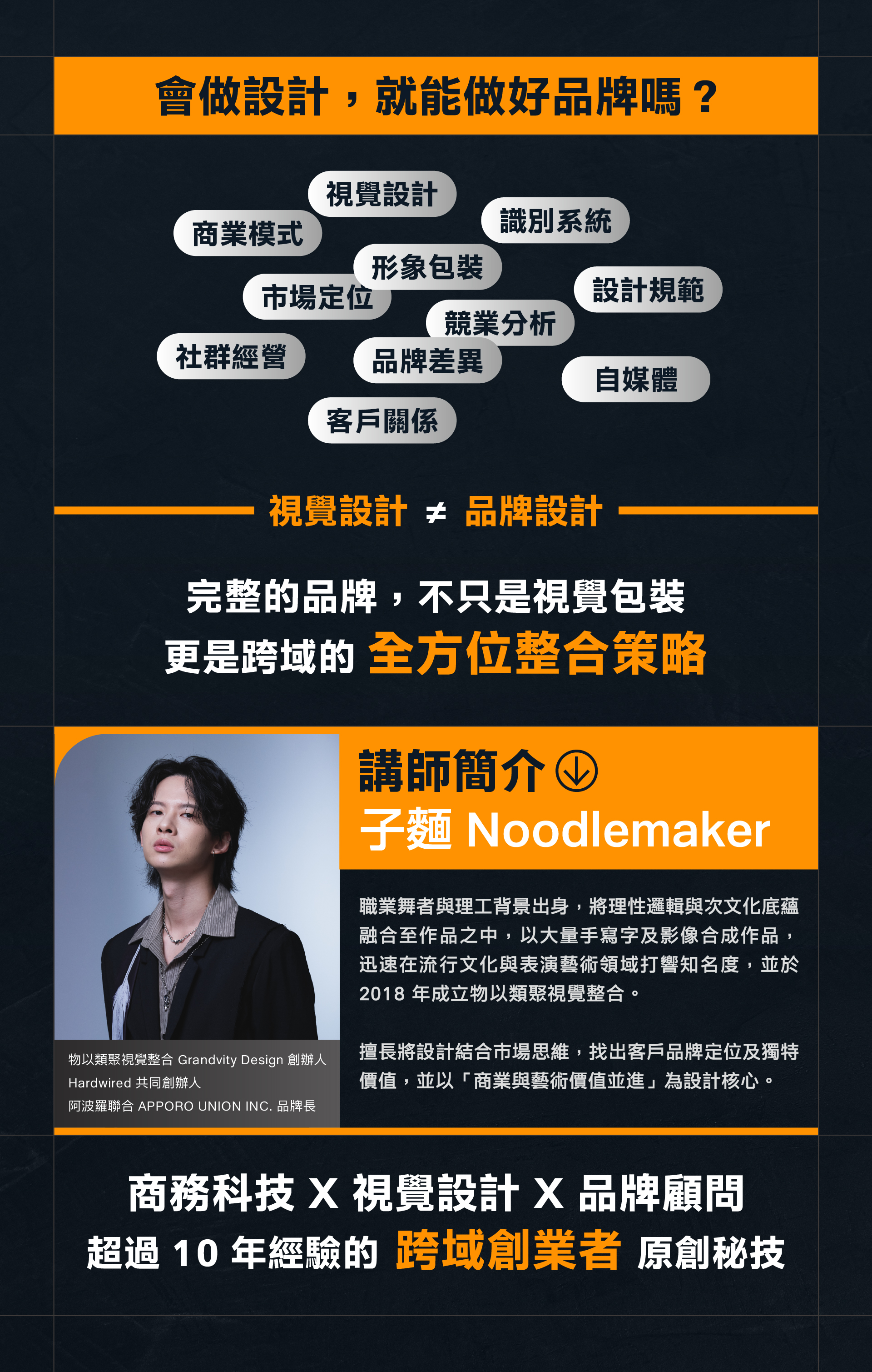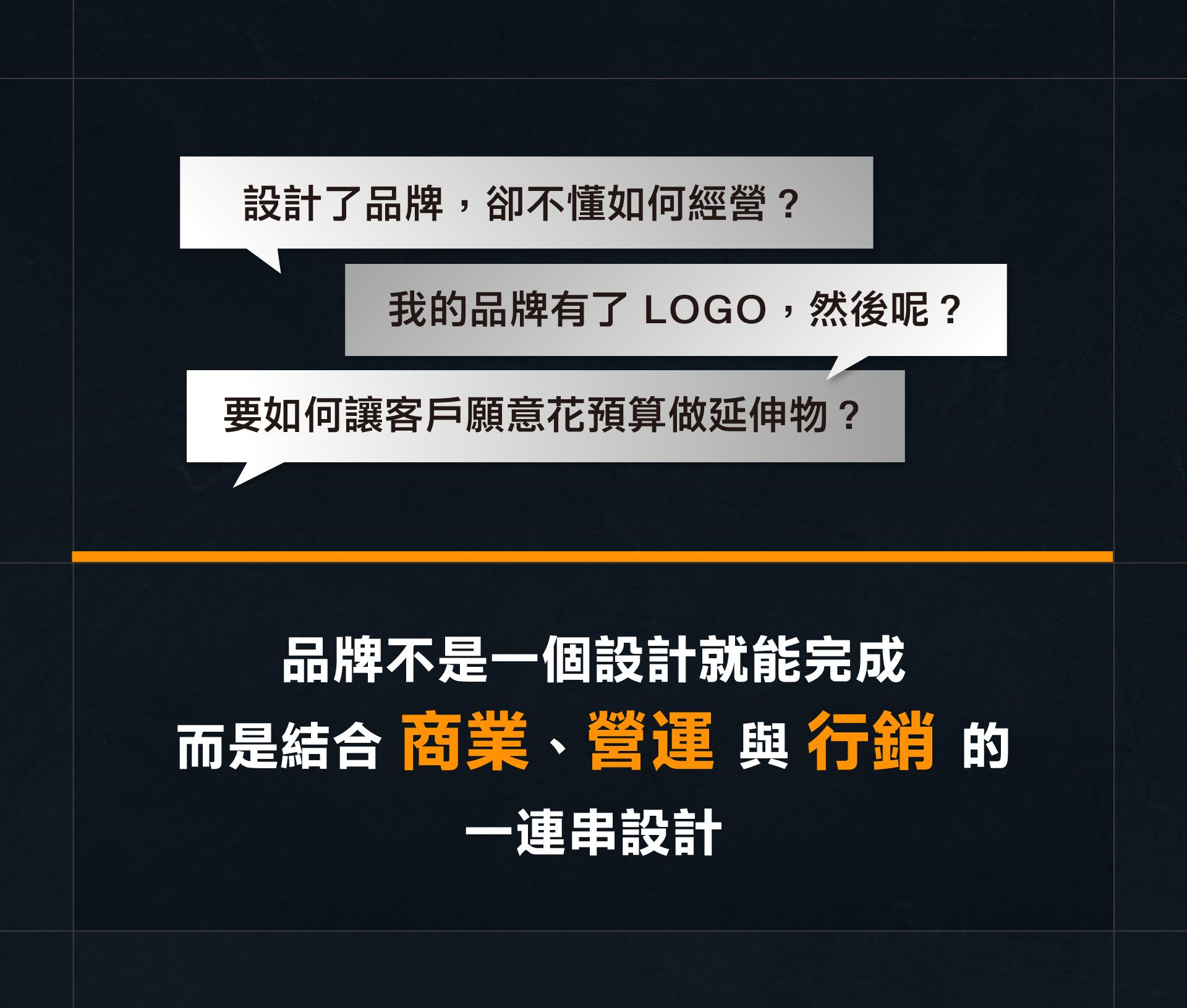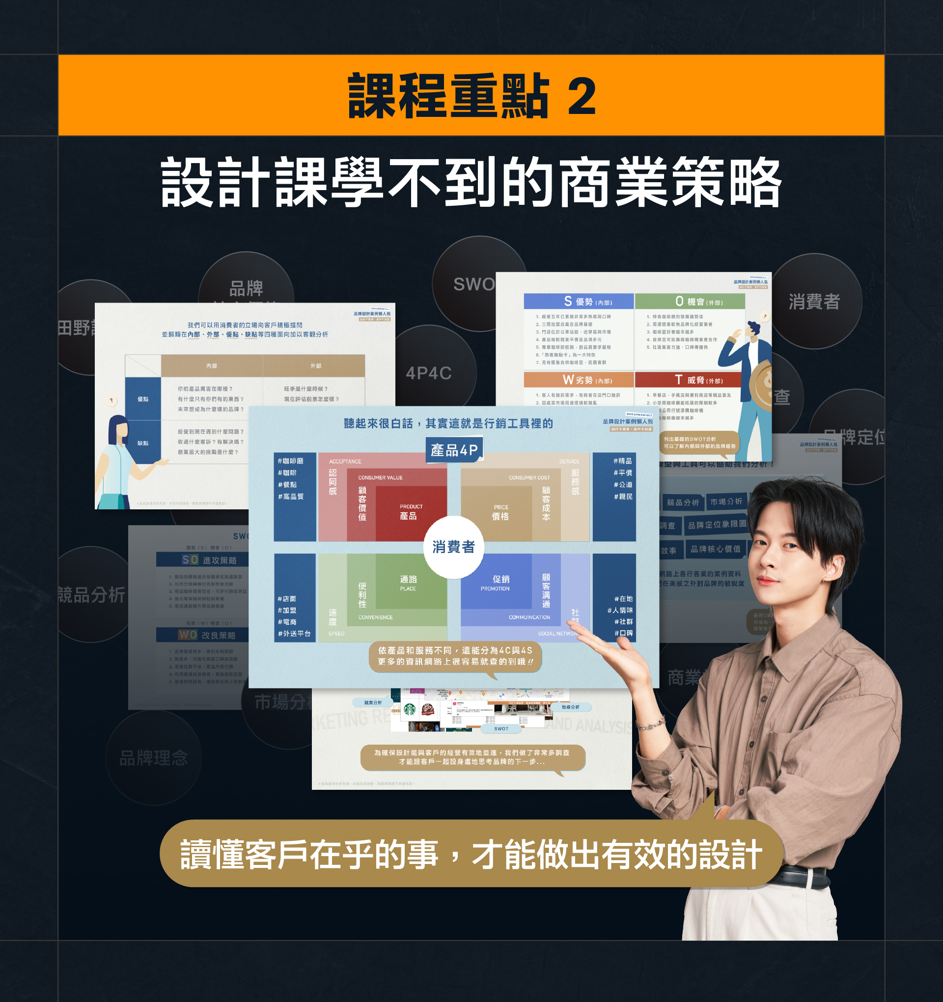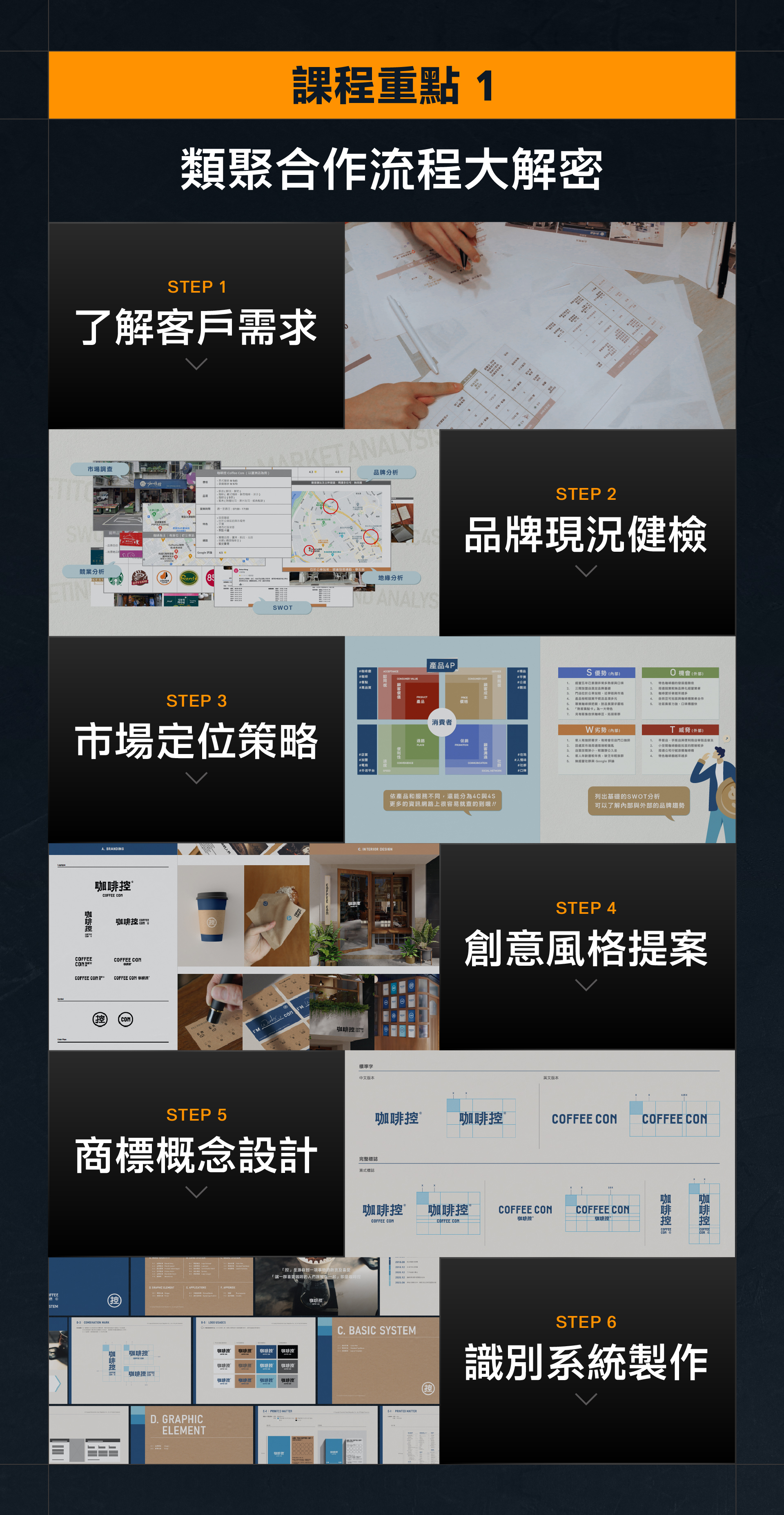 - 設計:建立品牌識別全觀。