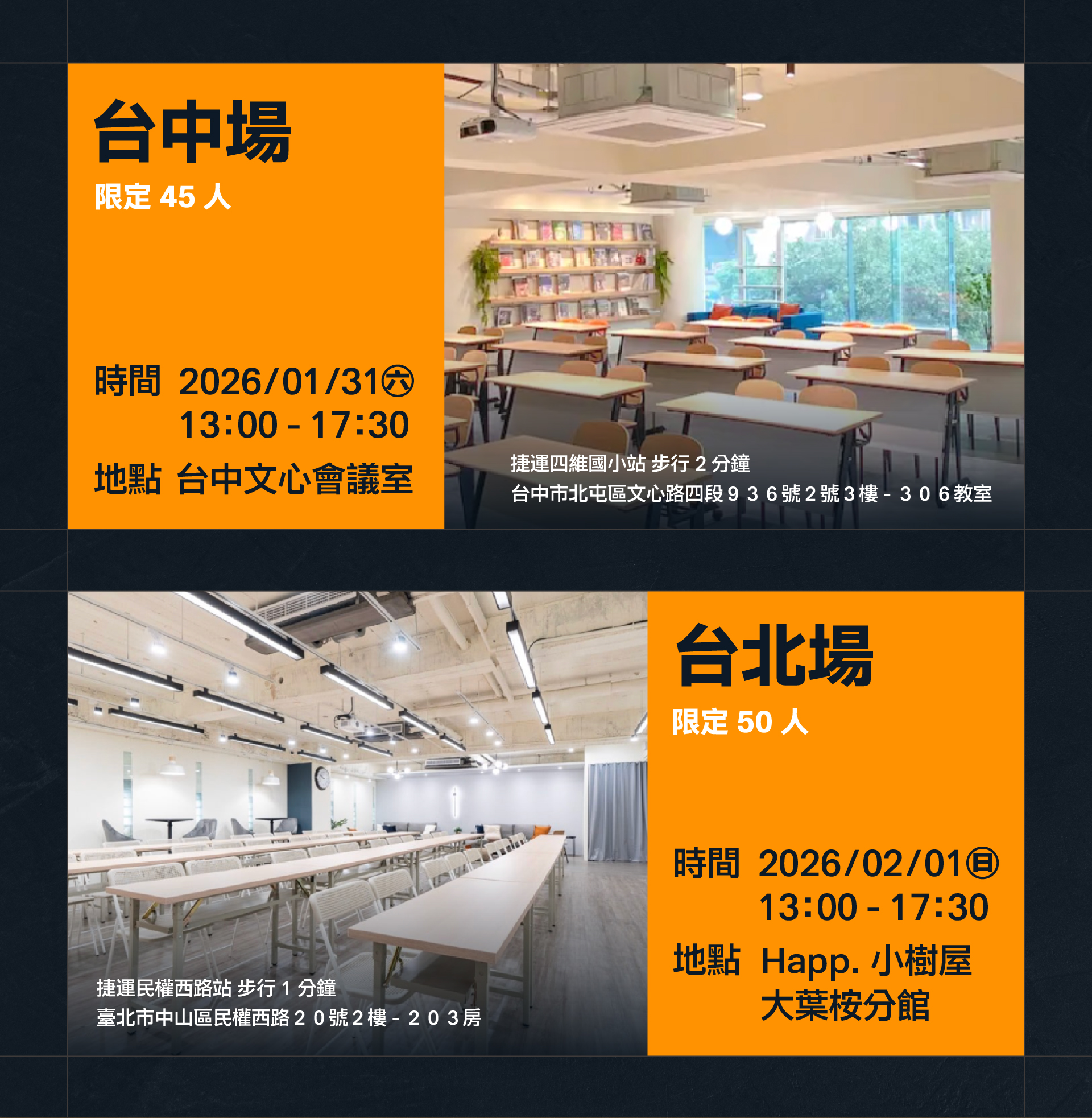 ❖ 課程名額|台中場 45 人 / 台北場 50 人
